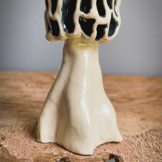 The Morels finally made it to market! These burners were made as botanically accurate as I could achieve. When the incense starts to burn, the smoke imitates the natural spore dispersal of a Morel mushroom. The burner is made out of stoneware ceramic and glazed by hand . The incense burner takes cone style incense 🖤