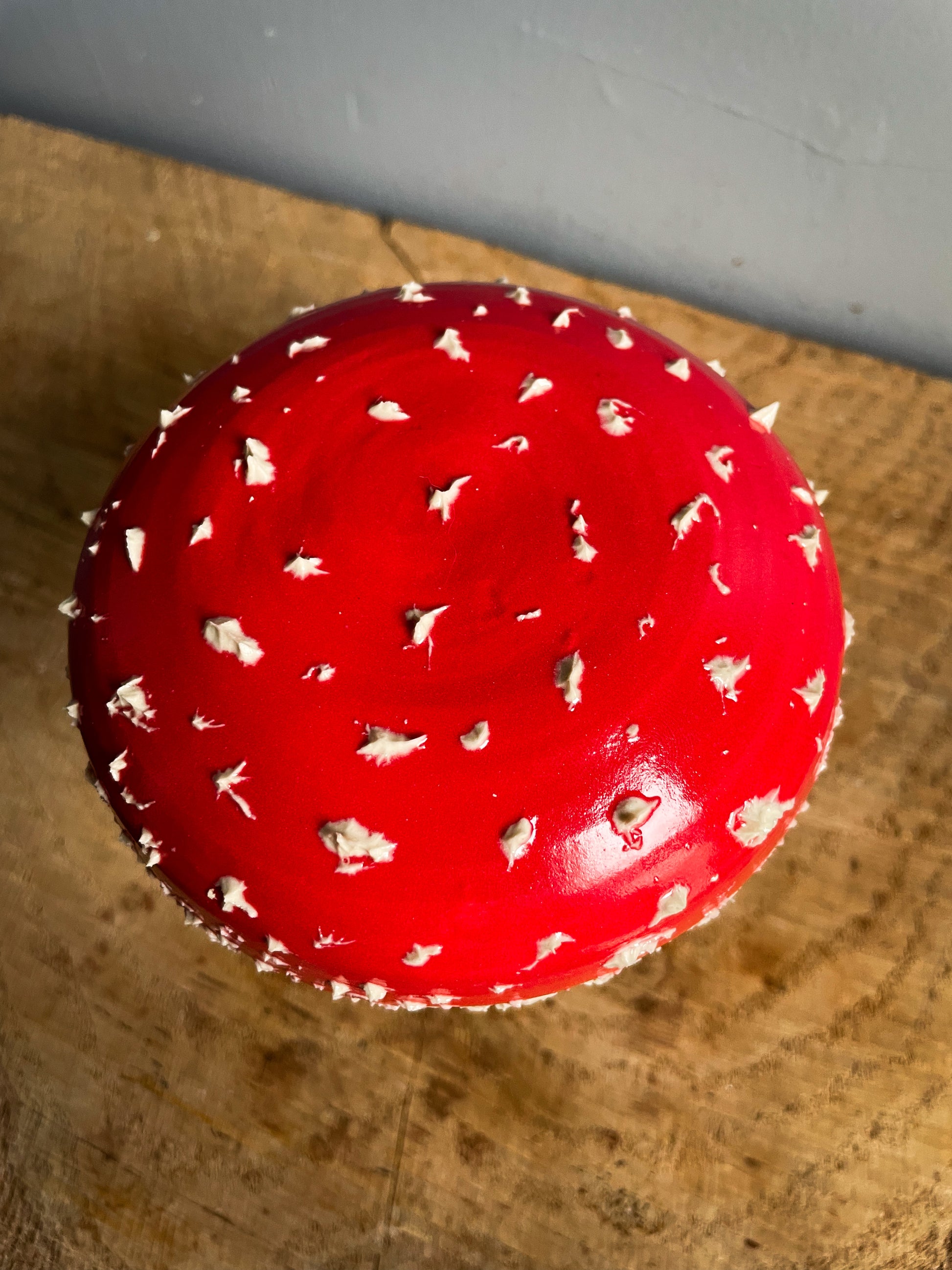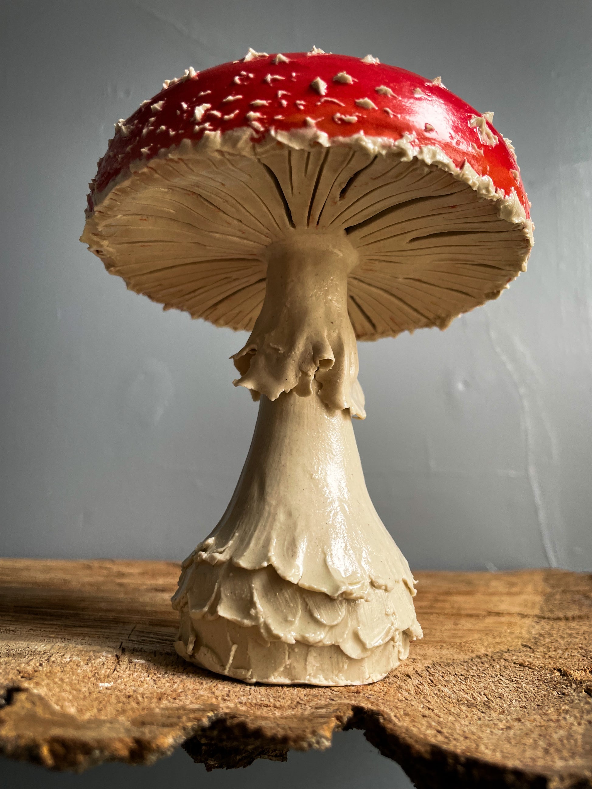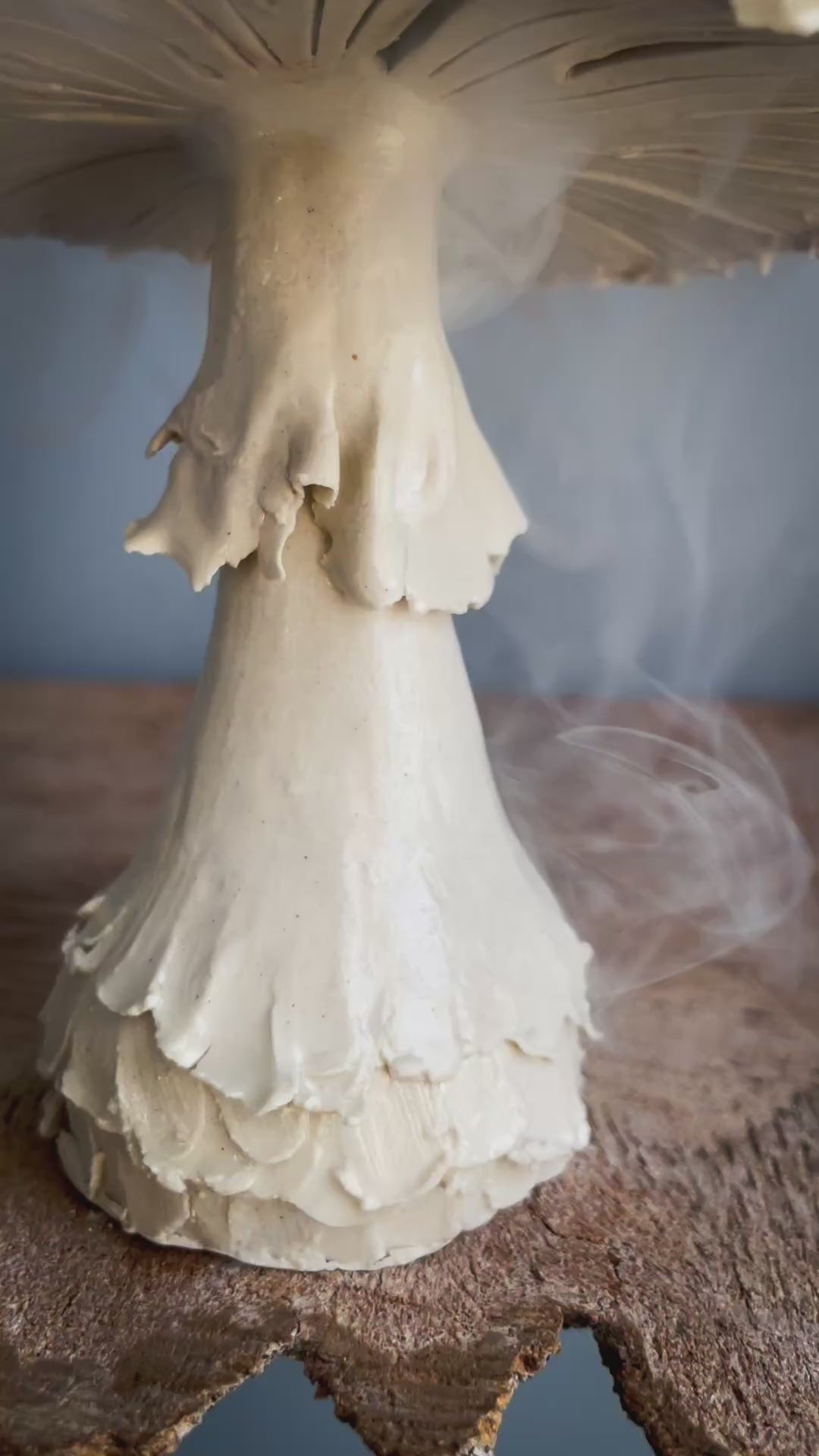 The ones everyone has their eyes on ! The classic amanita muscaria. These burners were made as botanically accurate as I could achieve. When the incense starts to burn, the smoke imitates the natural spore dispersal of an amanita . The burner is made out of stoneware ceramic and glazed by hand . The incense burner takes cone style incense 🖤