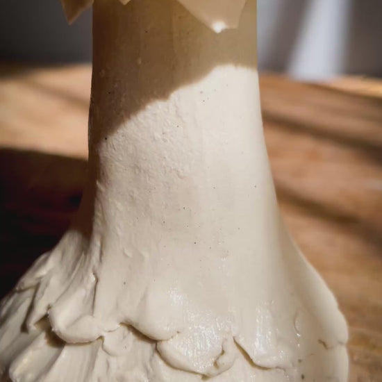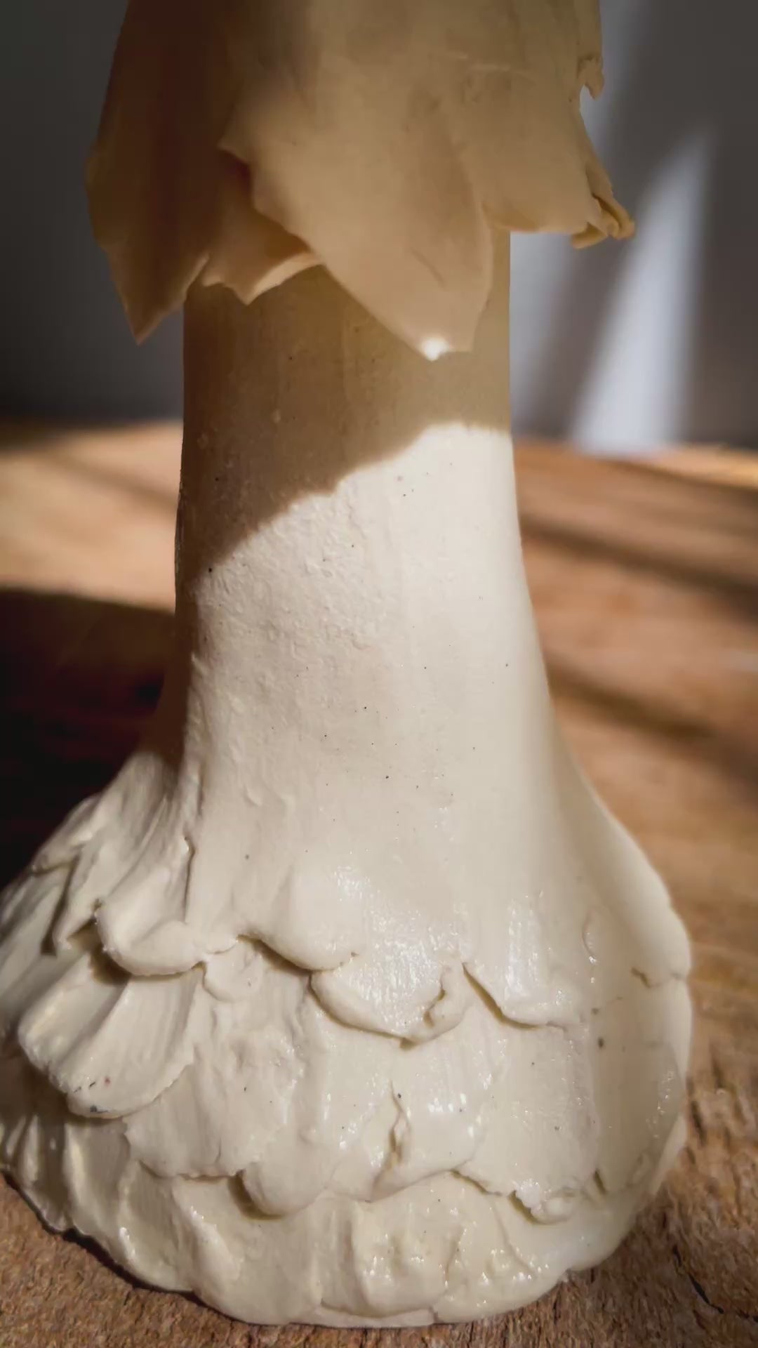 A kodama sits on top of this classic amanita muscaria. These burners were made as botanically accurate as I could achieve. When the incense starts to burn, the smoke imitates the natural spore dispersal of an amanita . The Kodama on top is the icing on the cake ! The burner is made out of stoneware ceramic and glazed by hand . The incense burner takes cone style incense 🖤