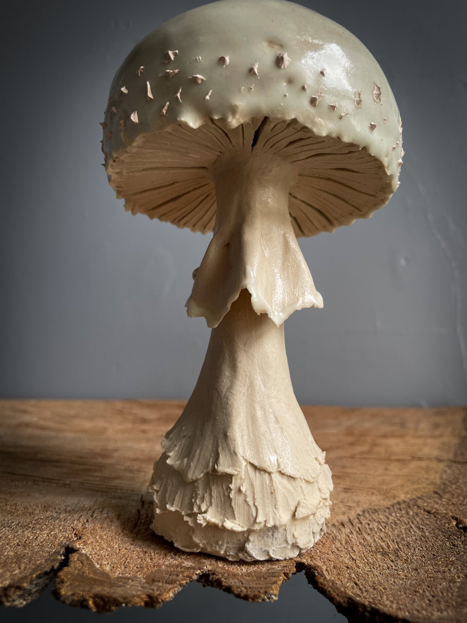 The deadly and beautiful amanita bisporigera . These burners were made as botanically accurate as I could achieve. But I did add a little twist . These guys glow in the dark ! Charge them in the sunlight or even blacklight and they glow ! When the incense starts to burn, the smoke imitates the natural spore dispersal of an amanita . The burner is made out of stoneware ceramic and glazed by hand . The incense burner takes cone style incense 🖤