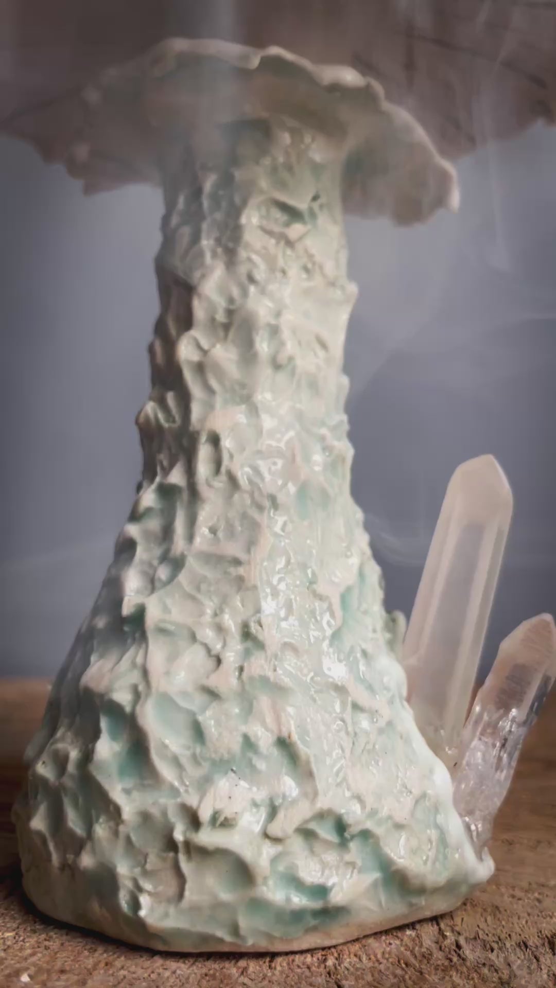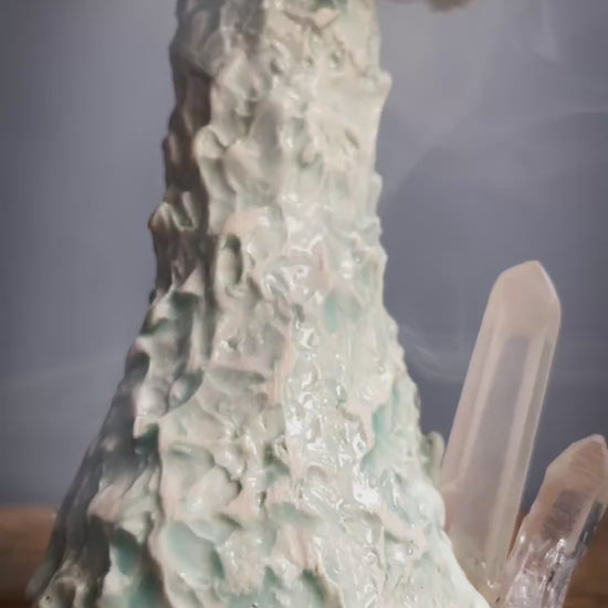 When the incense starts to burn, the smoke imitates the natural spore dispersal of an amanita . The burner is made out of stoneware ceramic and glazed by hand . The incense burner takes cone style incense 🖤